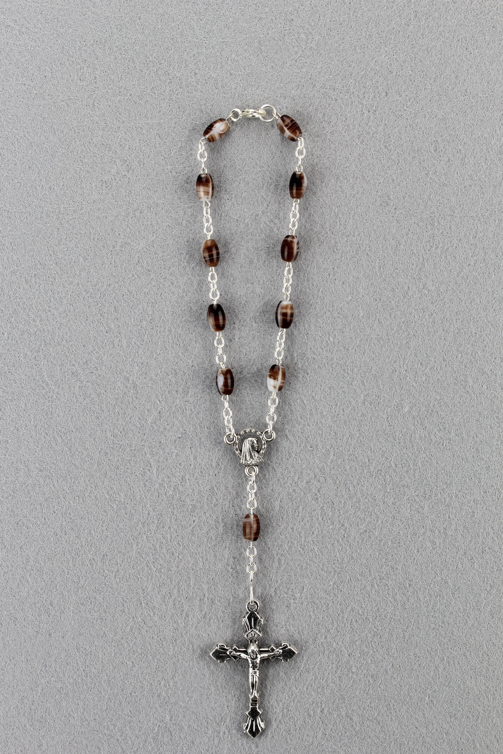 Autorosenkranz gekettelt, mit ovalen braunen Glasperlen, Ø 8 cm, Länge ca. 20 cm