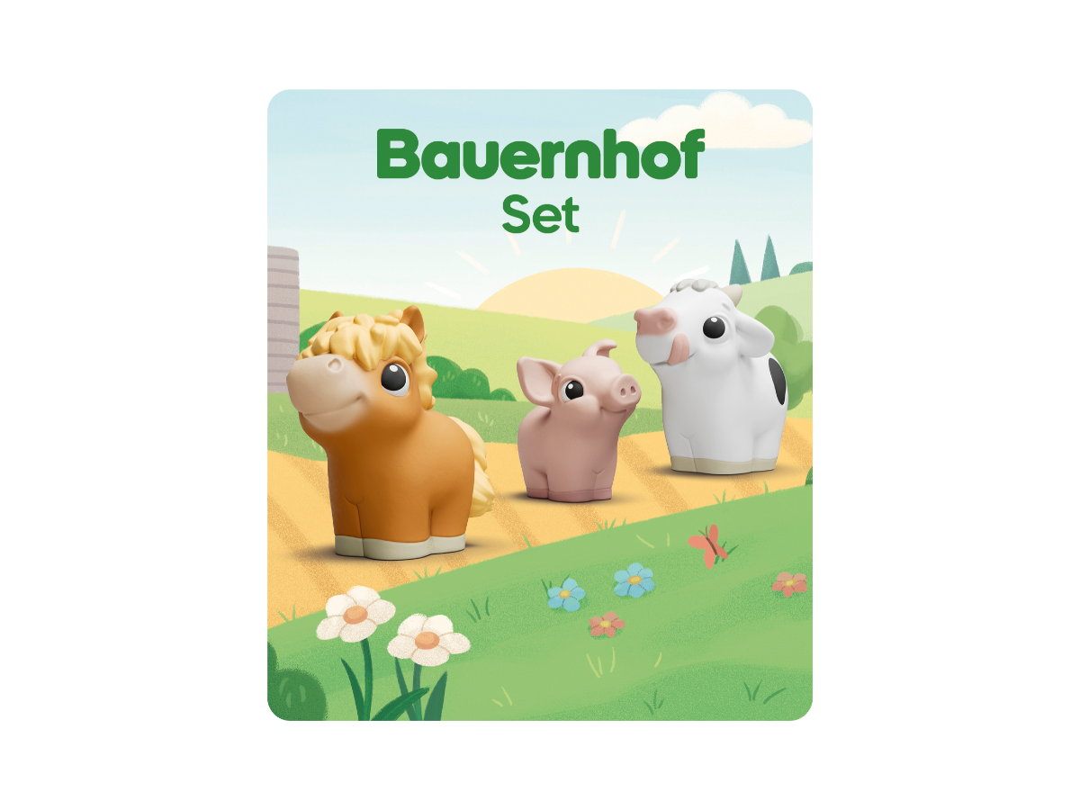 Drüüücken, lauschen und lernen mit My First Tonies! Entdecke die Welt der Bauernhoftiere! Welches Geräusch macht die Kuh? Und wie macht das Schwein? Und wie macht das Pferd? Lerne deine ersten Bauernhof-Tiere spielerisch kennen. In kurzen, altersgerecht erzählten Geschichten erfahren die Allerkleinsten alles über ihre ersten Bauernhof-Tiere, üben ihr Hörverstehen und ihre Sprachfähigkeiten und lernen ganz nebenbei neue Wörter. Ein Klangteppich mit echten Tiergeräuschen und Musik begleitet die kleinen Bauernhof-Fans beim offenen Spiel. Auf jedem Tonie lädt ein original tonies Tierlied mit eingängigen Melodien zum Mitsingen und Mitmachen ein. Gelesen und gesungen von Kindern und Erwachsenen! Mit echten Tiergeräuschen!